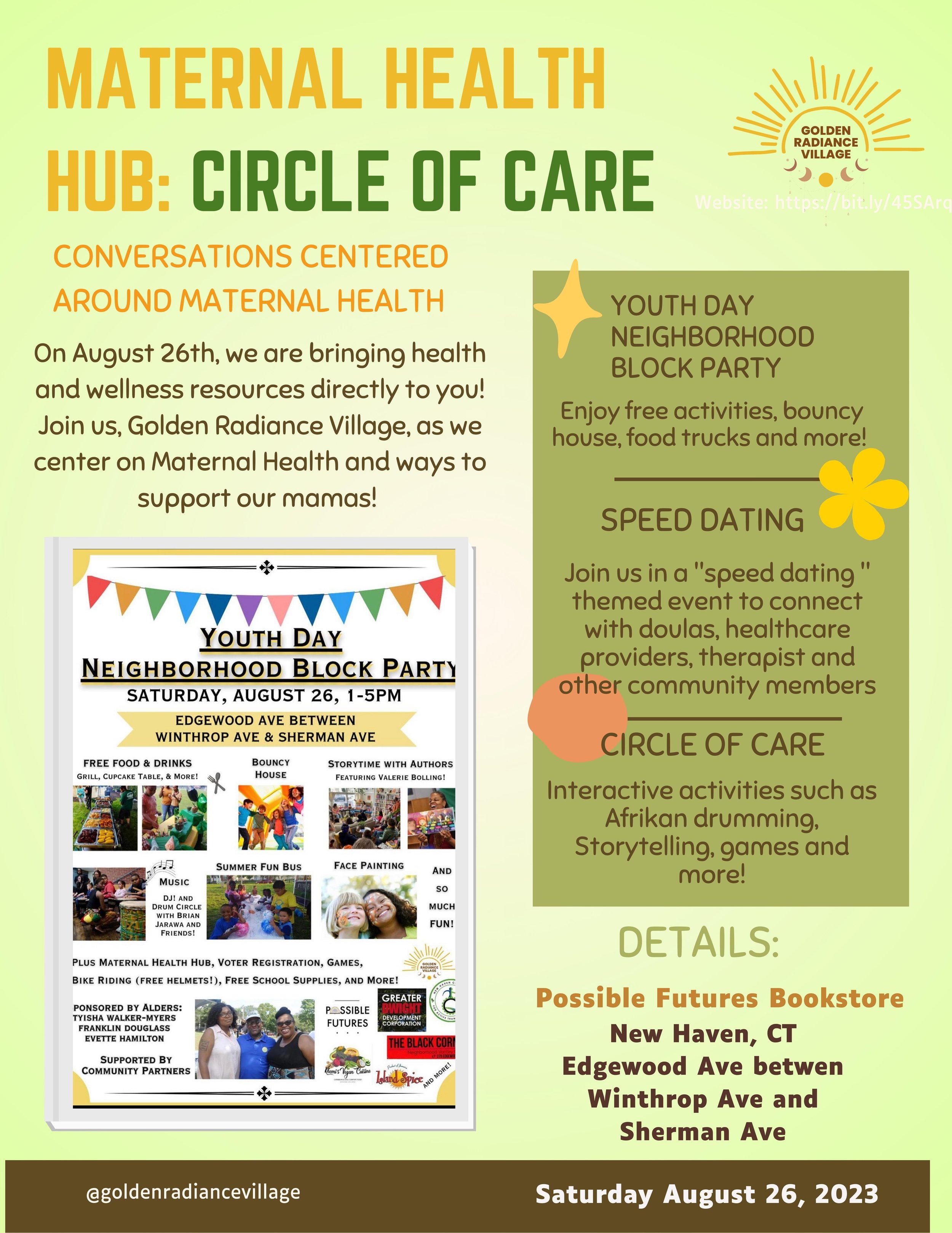 In collaboration with Lucinda’s House, Golden Radiance Village will host a table at the New Haven Community Baby shower. We will supply families with education, baby supplies and gifts at the Dixwell Q-House Gymnasium. Secure a chance to win a prize by joining our Melanated Mama support group!